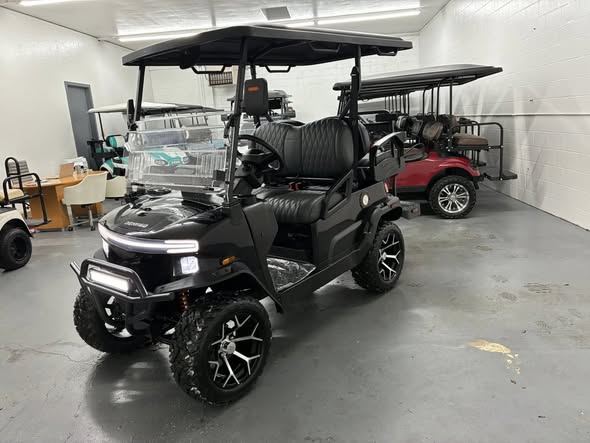 Presenting this Brand New Denago Nomad XL Lithium Golf Cart. Loaded with all the options! A very cool beefy appearance on these models!