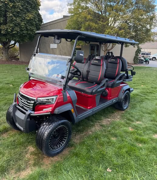 Fresh truck load of 2026 Epic E60FX Lithium 6 Passenger Golf Carts. Road ready units! Super nice ride. Your local authorized Evolution, Epic, And Icon Dealer!