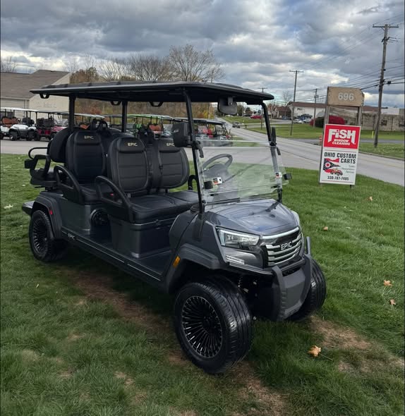 Fresh truck load of 2026 Epic E60FX Lithium 6 Passenger Golf Carts. Road ready units! Super nice ride. Your local authorized Evolution, Epic, And Icon Dealer!