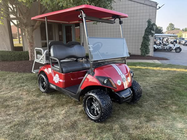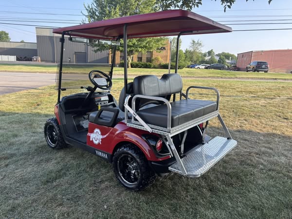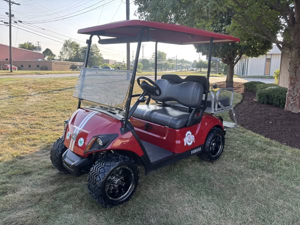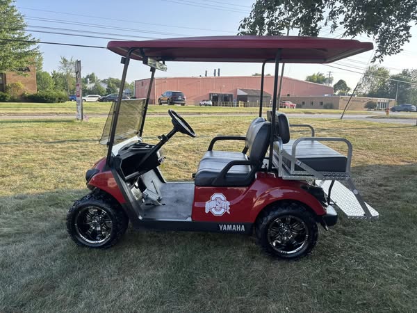 Check this Ohio State Themed Yamaha Drive 2 GAS Golf Cart out! Very clean. Garage kept. Runs and drives great. Just serviced, ready to go.
